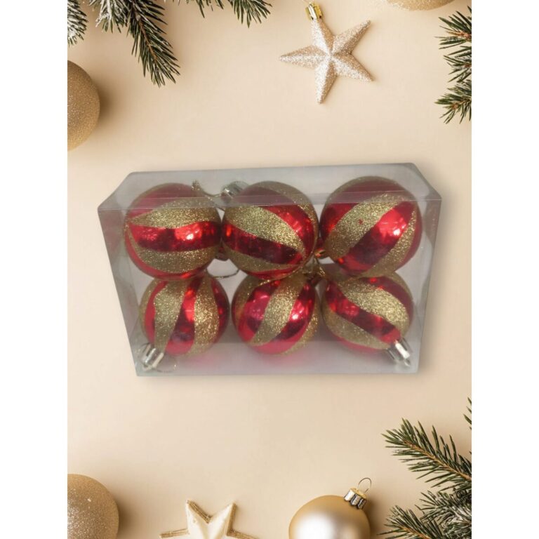 Kit com 6 Bolas de Natal com Glitter – 5cm