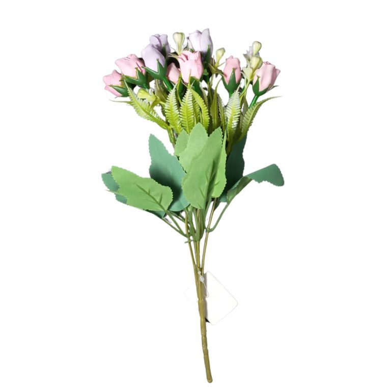 Buquê de Rosas Artificiais Tons Pastéis com 15 Flores – 5 Galhos, 28cm Este encantador buquê de rosas artificiais