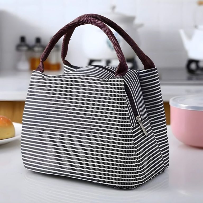 Bolsa Térmica Lancheira Marmita Listrada Feminina Fitness – Compacta e Impermeável em Nylon- Cores Variadas Descubra a solução perfeita para