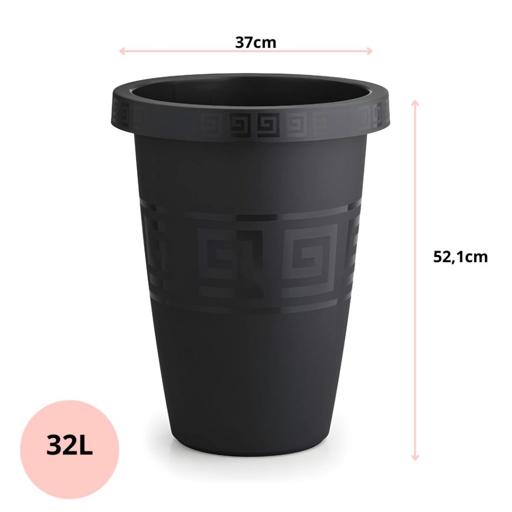 Vaso Grego Redondo 32 Litros – Preto – Plasmont