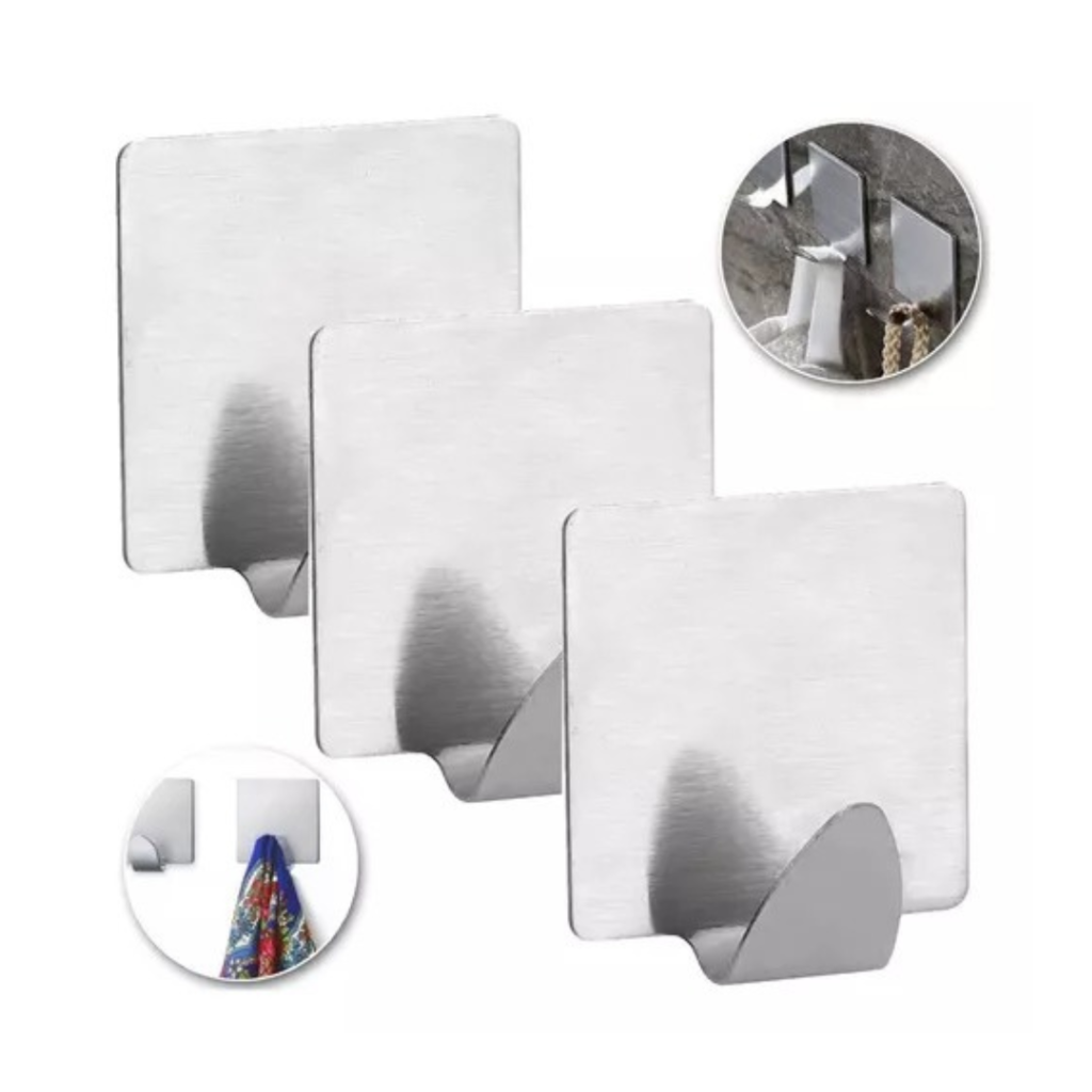 Cabide Auto Colante Inox c/4 Quadrado mg2808 7892017108502