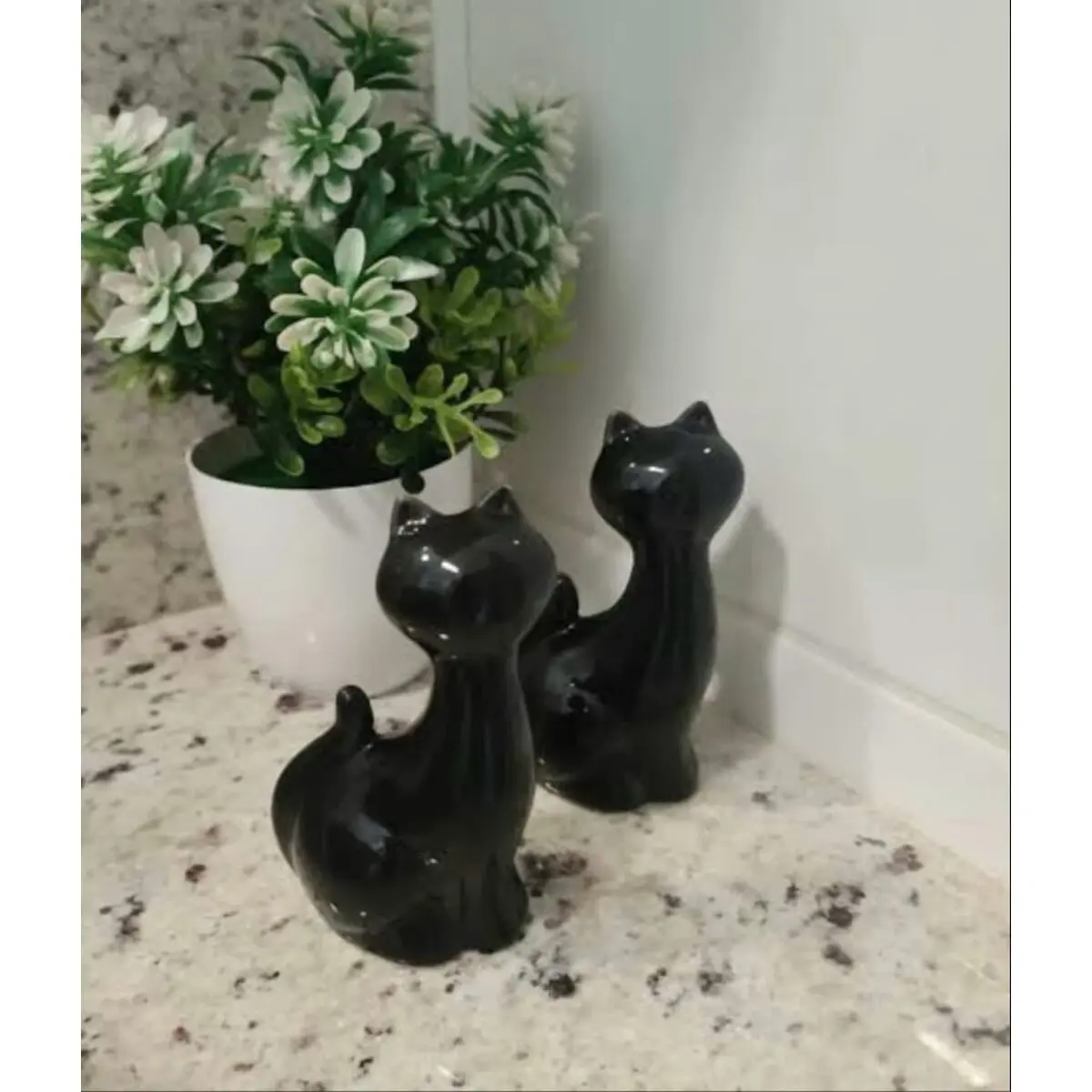 Encante seu ambiente com este elegante enfeite de gato nas cores preto e branco. Com aproximadamente 6 cm de altura, o objeto é ideal para complementar sua decoração com delicadeza e estilo.