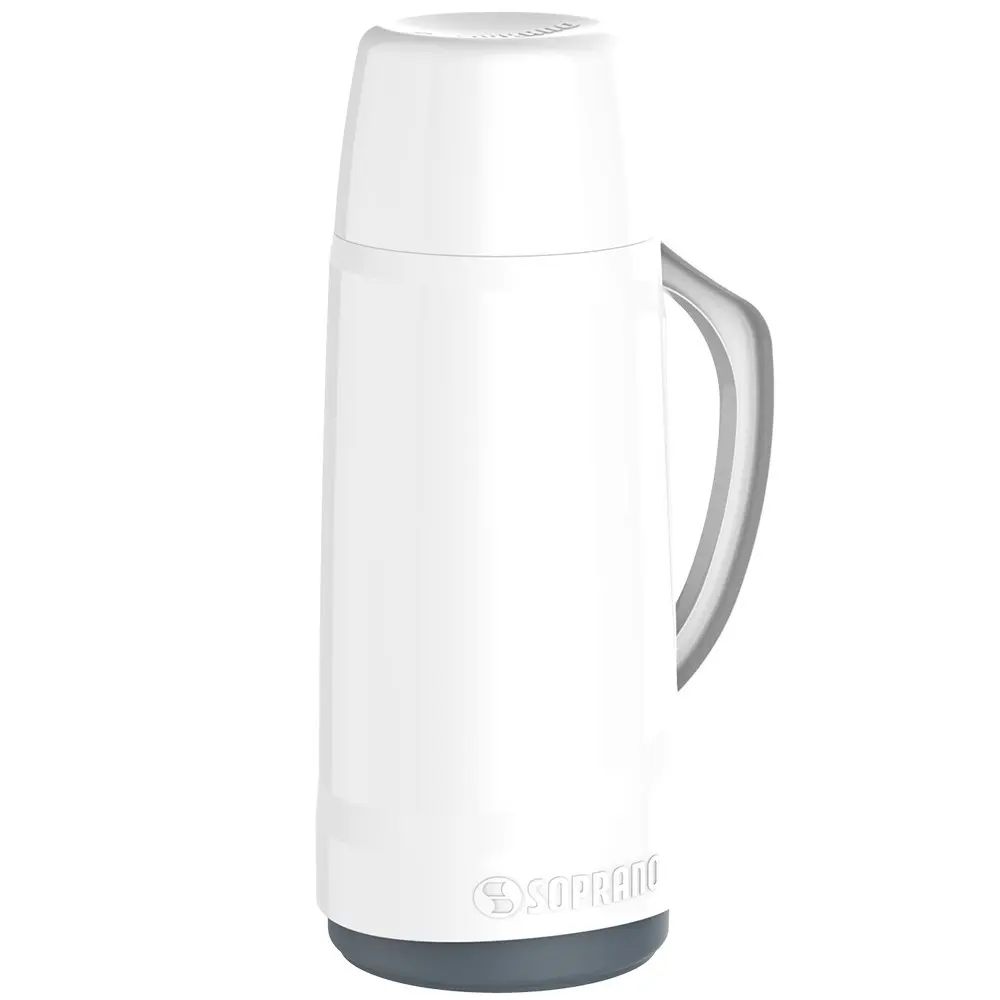 Design moderno com ampola de vidro, alça ergonômica e rolha corta-gotas que evita pingos após servir. Ideal para líquidos quentes ou frios, com excelente eficiência térmica. Tampa pode ser utilizada como copo. Livre de Bisfenol (BPA Free).