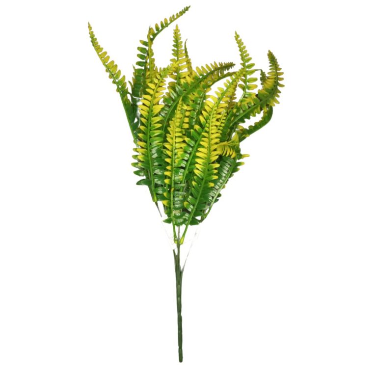 Buquê Artificial de Samambaia com 5 Galhos e 25 Folhas – 37cm (Verde, Verde com Amarelo, Verde com Branco)