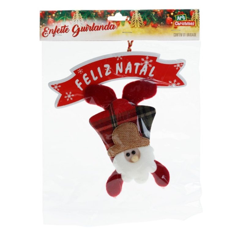 Enfeite de Natal Boneco de Neve,Papai Noel e Rena com Glitter e Pingente “Feliz Natal”
