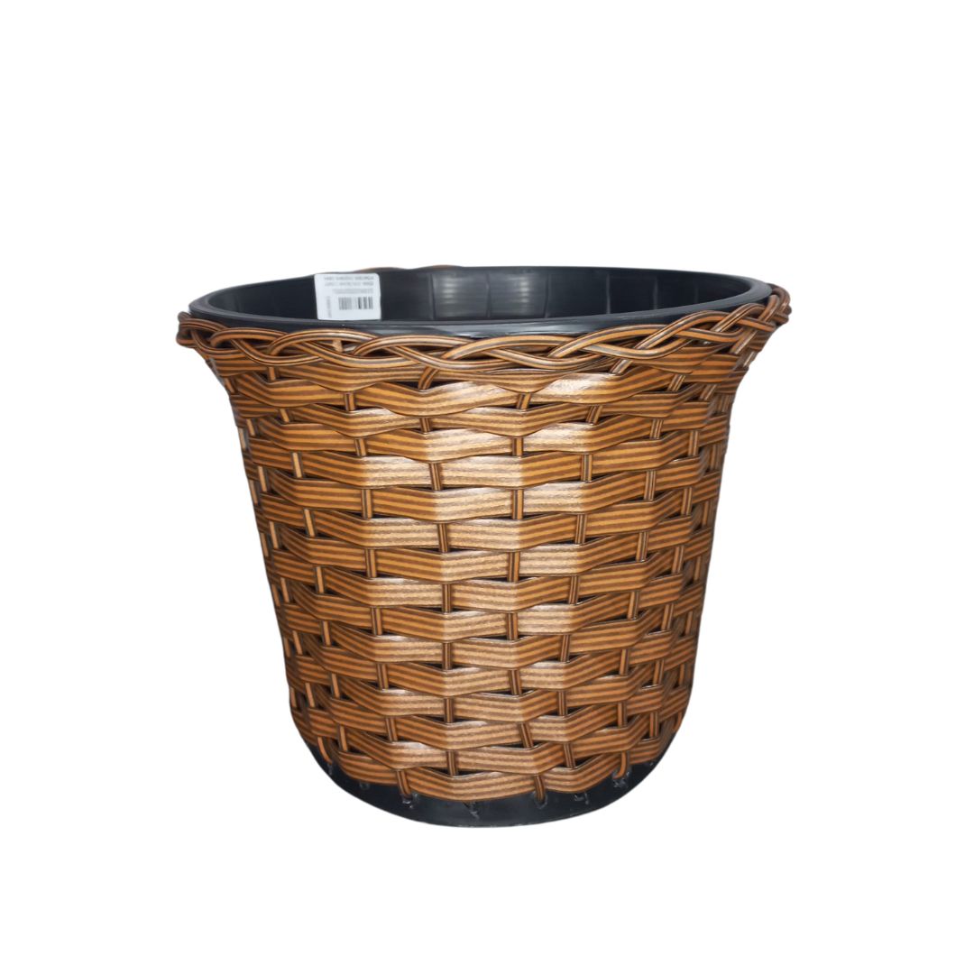 Vaso Decorativo Simbídio em Junco Sintético Marrom Trançado, 18×22 cm – Inclui Vaso Interno de Plástico Preto